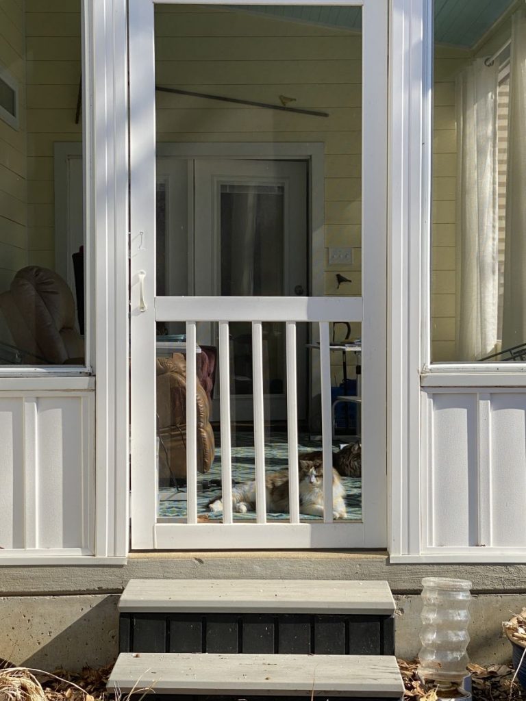They were always curious about whatever was going on. In the second picture, Clark was just home from the vet, where he had a close shave. Literally. He has such a heavy undercoat that he mats quickly. This particular time, he had to have some professional clipping done. Thankfully, Clark loves to be brushed and he hasn’t had any more close shaves.