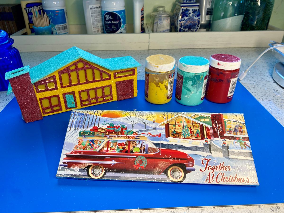I have had a few custom orders where the customer asked for a plain base, but for the rest I use Christmas cards to make the bases of my putz houses.